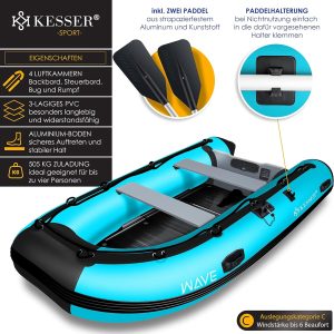 KESSER® Inflatable Boat 3.20 m for 4 People – Wave Motor Suitable Leisure Boat Paddle Boat Motor Boat Fishing Boat – with 2 Benches – Aluminium Base Paddle Pump Repair Kit & Bag Inflatable PVC
