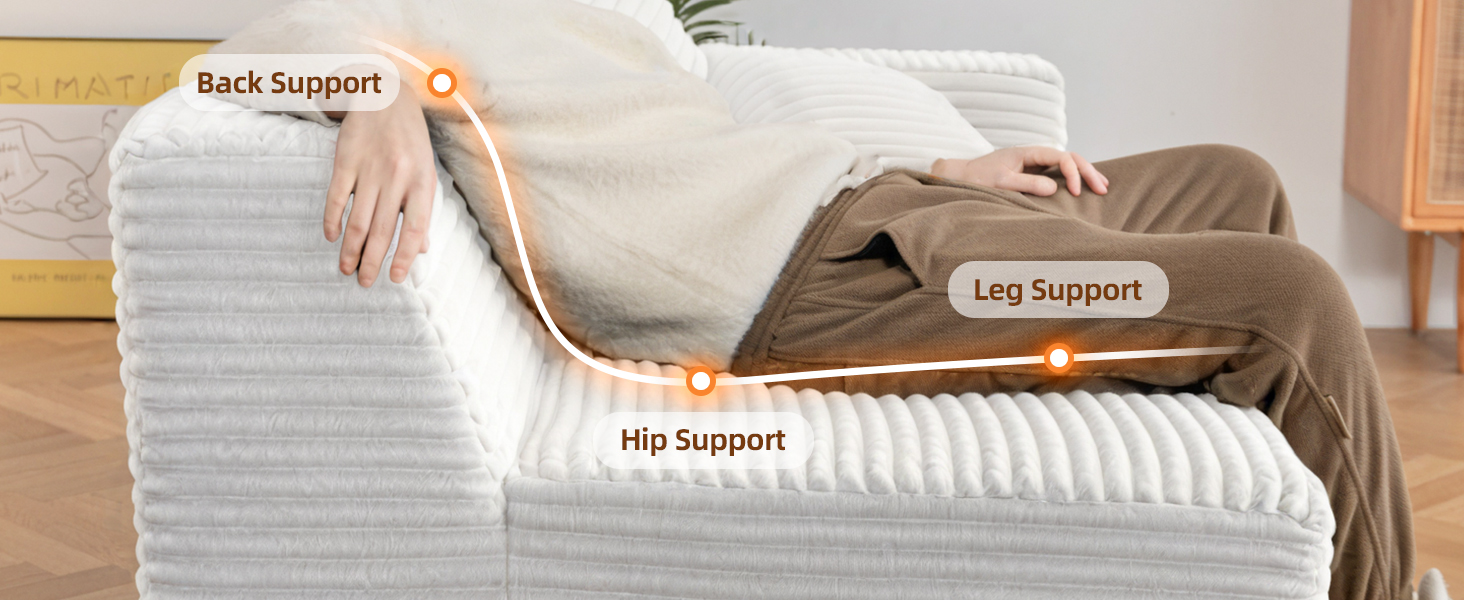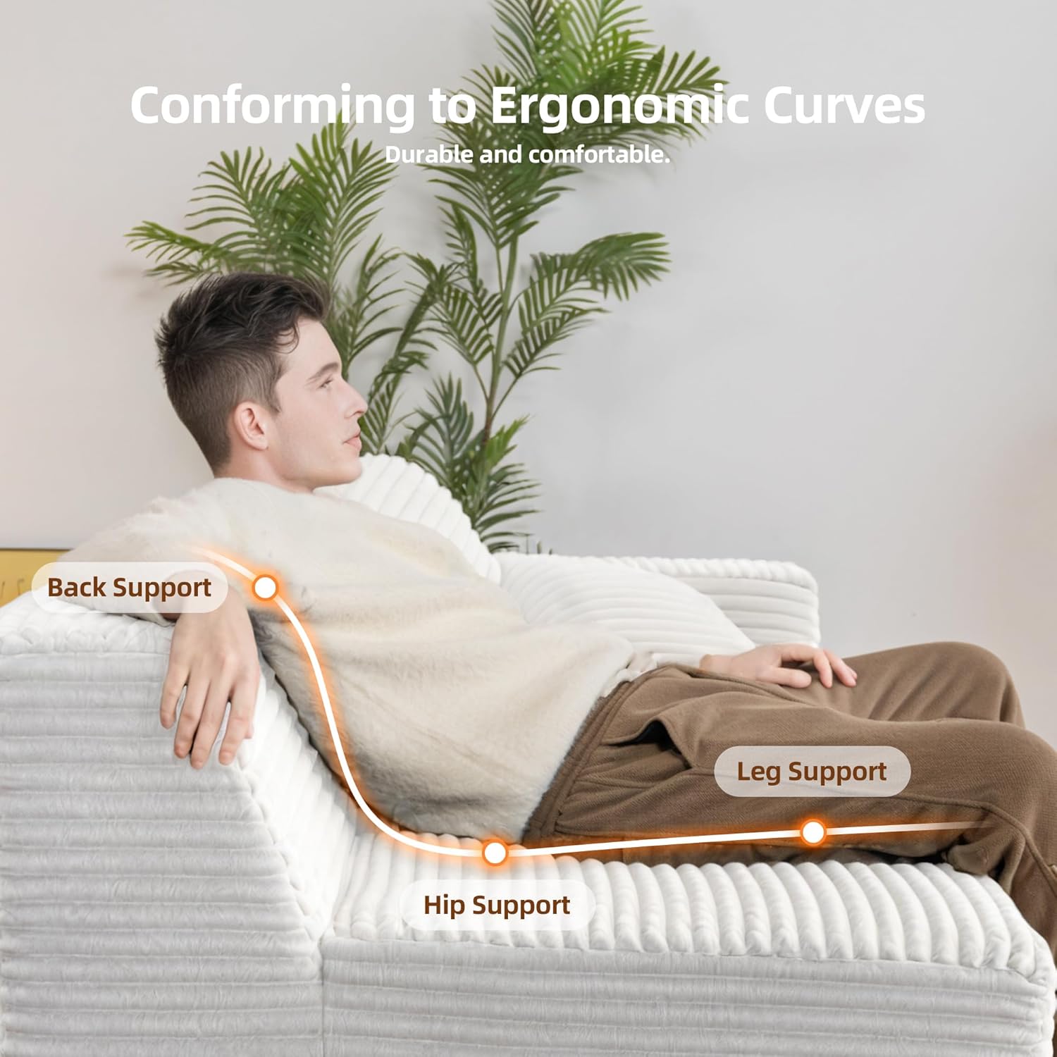Luxurious Corduroy Fabric: This corduroy couch wraps you in cloud-like comfort with its ultra-soft corduroy fabric that maintains elegant beauty. Plush cushioning molds to your body for all-day relaxation. dressed in timeless neutrals that elevate any home’s aesthetic from morning coffee to movie nights.