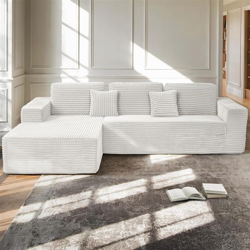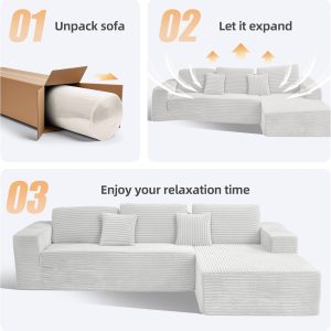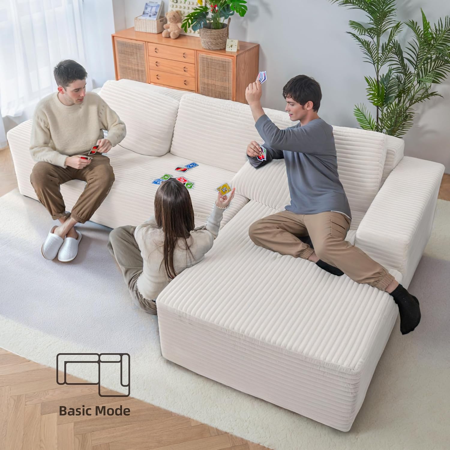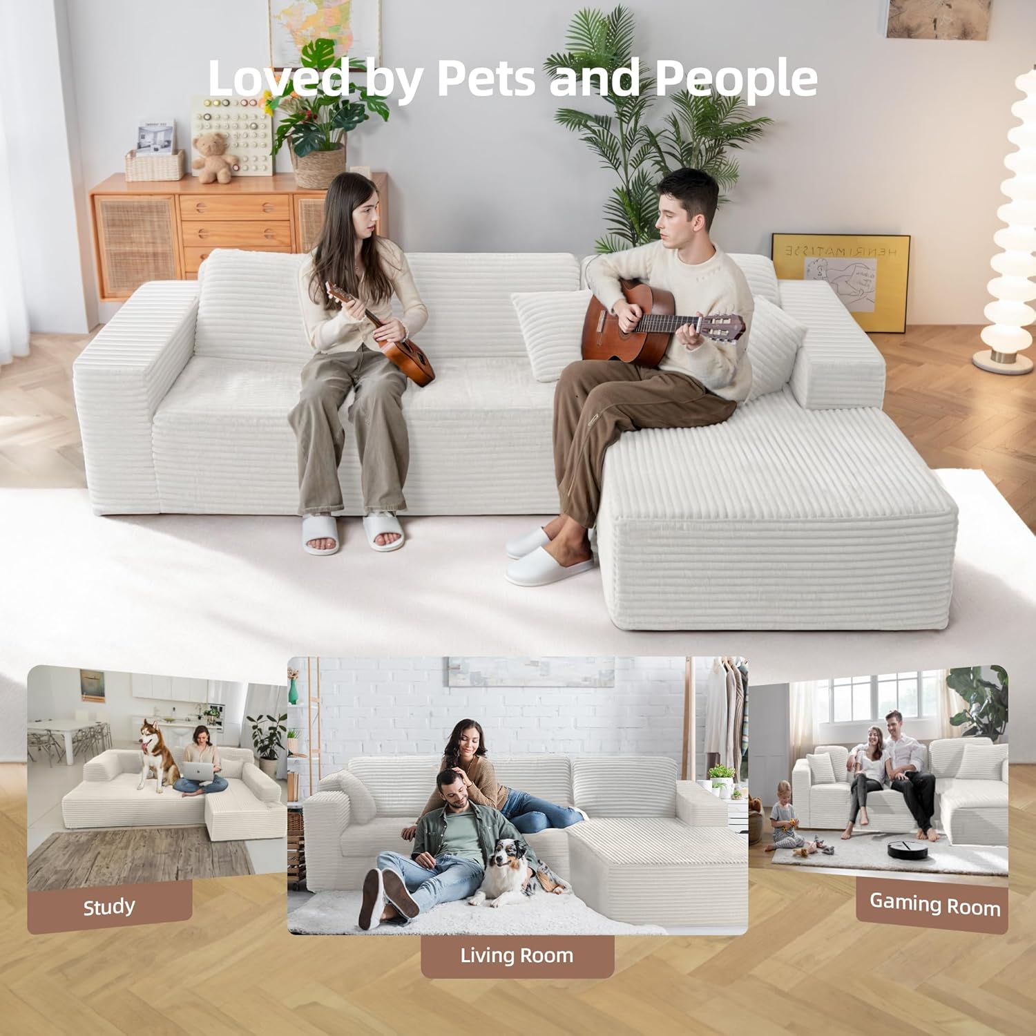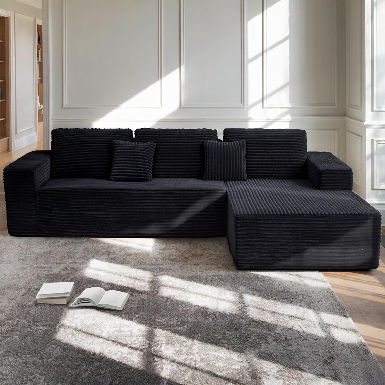 110 Boneless Couch. Cloud Couch Sectional. L-Shape Corduroy Modular Sectional Sofa Deep Seat. Upholstered Couches for Living Room. No Assembly Required