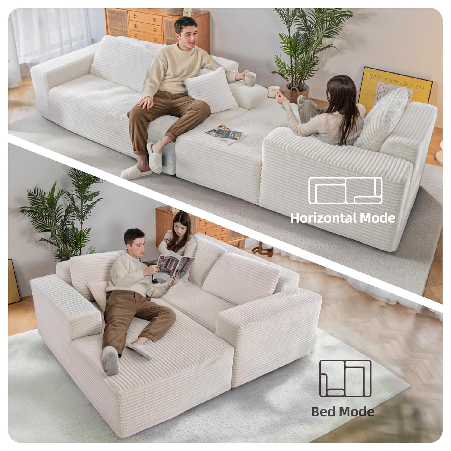Multifunctional Use: This boneless couch transcends conventional seating with its convertible design that effortlessly transforms into a plush lounger or guest-ready full-size bed. Each freestanding module features independent mobility. streamlining room transitions by simplifying reconfiguration compared to traditional furniture setups.
