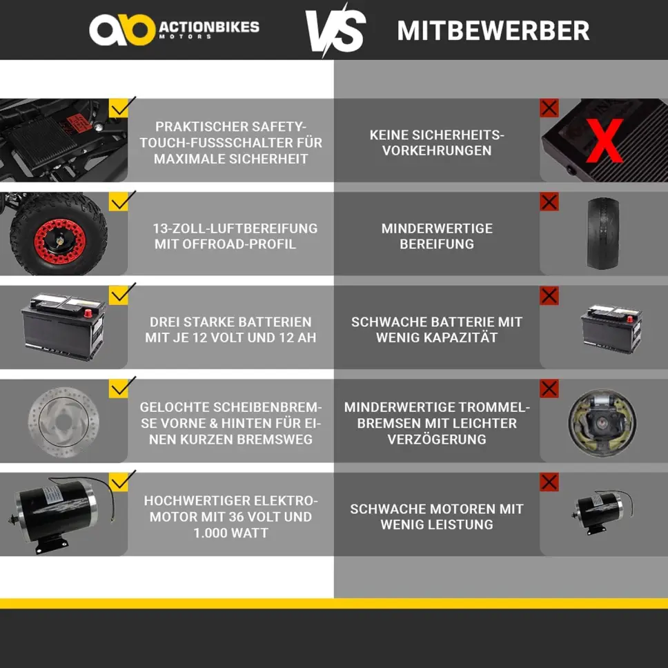 Moteur 1000 volts 150 watts jusqu’à 100 km/h – Quad pour enfants – Quad de poche – Interrupteur à pédale tactile de sécurité – Pour les enfants de 6 ans et plus