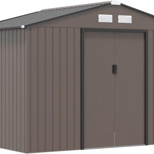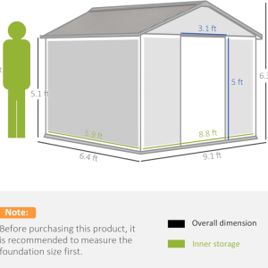 Outsunny 9 x 6ft Garden Metal Storage Shed. Outdoor Storage Tool House with Ventilation Slots. Floor Foundation and Lockable Double Doors. Light Green