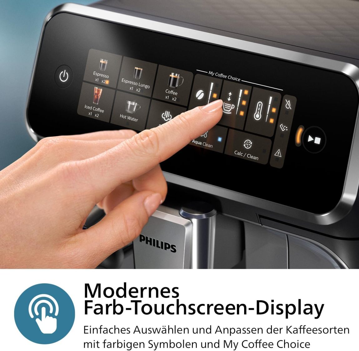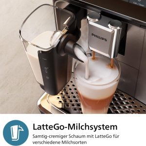 Philips 3300 Series Fully Automatic Espresso Machine – 6 Drinks. Modern Colour Touch Screen Display. LatteGo Milk System. SilentBrew. 100% Ceramic Grinder. AquaClean Filter. Black Chrome (EP3347/90)