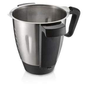 - Grand bol mélangeur amovible en acier inoxydable d’un volume d’ébullition de 3 litres pour une capacité de 4.5 litres. couvercle avec ouverture de remplissage. poignée et gobelet gradué inclus