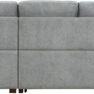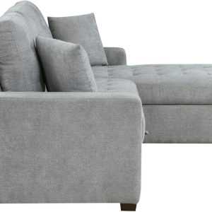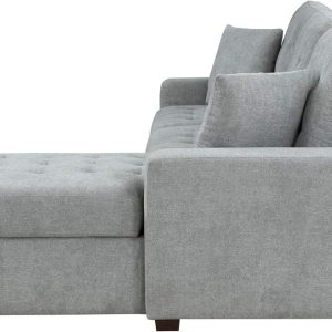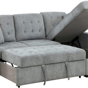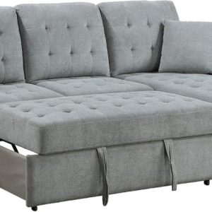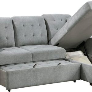 Sleeper Sofa. L Shape Sectional Couch with Right Storage Chaise and Pull Out Sofa Bed. Grey