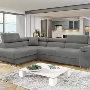 Sleeper Sofa. L Shape Sectional Couch with Right Storage Chaise and Pull Out Sofa Bed. Grey